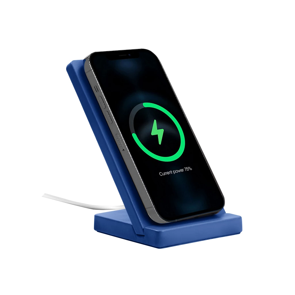 Découvrez ce magnifique support en bois gainé en cuir pour poser et recharger votre Iphone. Quelle que soit la taille de l'iPhone compatible Magsafe que vous possédez, votre téléphone est parfaitement calé dans son support. Votre chargeur magsafe est parfaitement maintenu avec une pastille de Micro Succion et se loge parfaitement dans l'espace qui lui est réservé. Disponible dans une multitude de couleur, il se monte et démonte facilement pour l'utiliser au bureau, à la maison ou même en voyage.