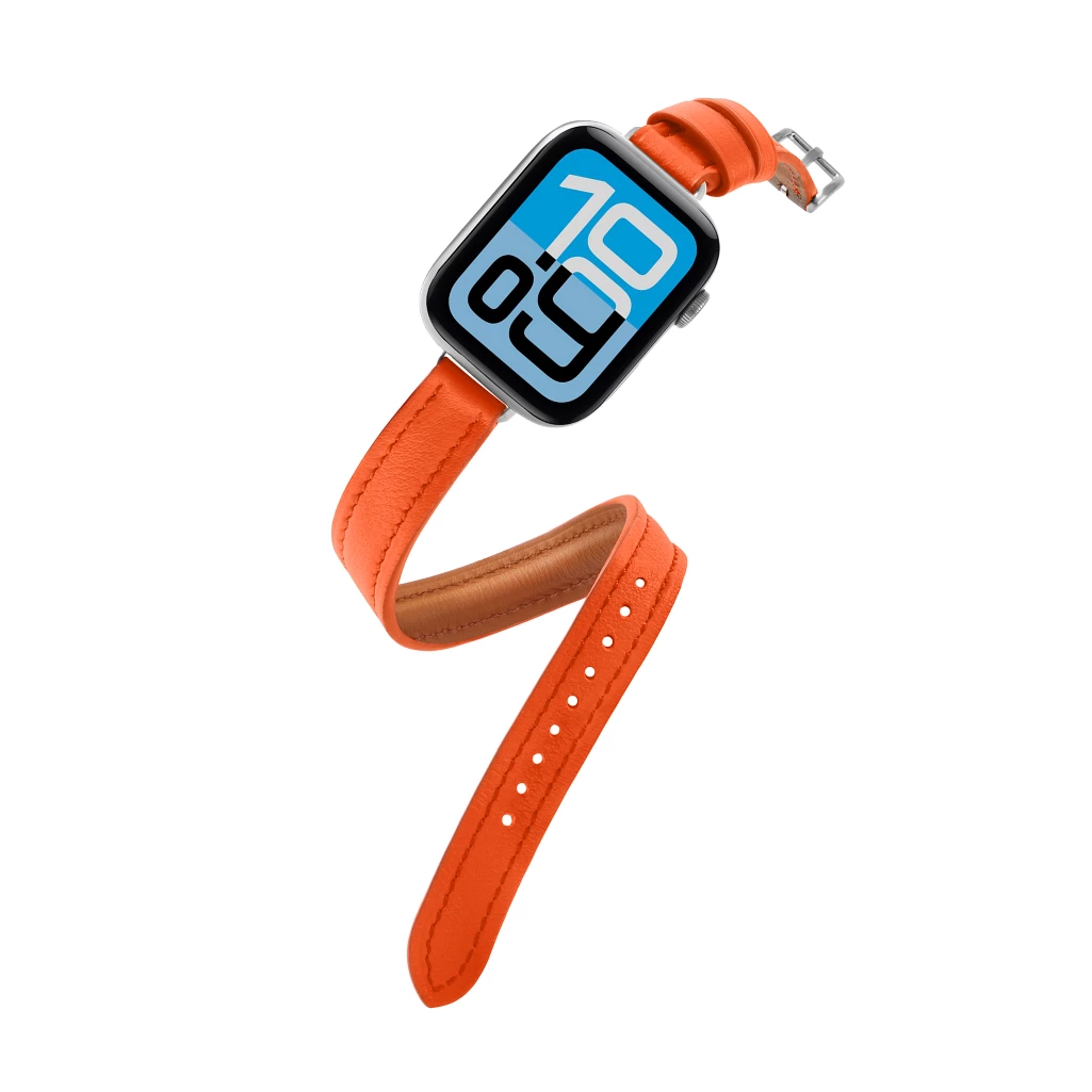 Fabriqué en cuir de veau doux et sa doublure hypoallergénique, le bracelet Apple Watch double tour se distingue par sa finesse et son bombage subtil, garantissant un confort inégalé tout au long de la journée.