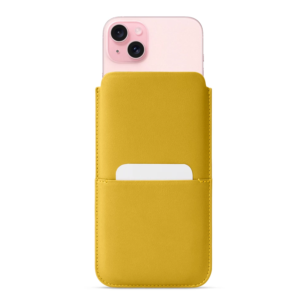 Étui de luxe avec poche - iPhone 15 Plus Jaune Soleil  - Cuir Lisse