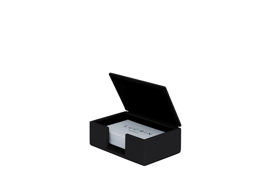 Boîte pour cartes de visite à encoche en cuir naturel de 1ère qualité. Ossature en bois gainée en cuir, avec fermeture à rabat. Ce porte-cartes peut contenir jusqu'à 100 cartes de visite de format maximum 93 x 58 mm. Idéale pour les hommes d'affaires, cadres ou professionnels. À coordonner avec son sous main ou des accessoires de bureau de la gamme Lucrin.