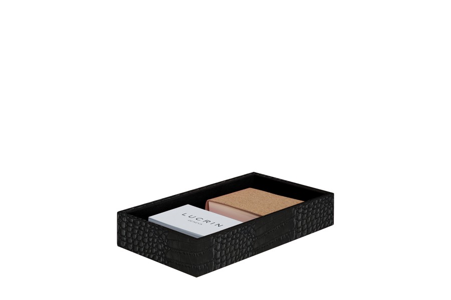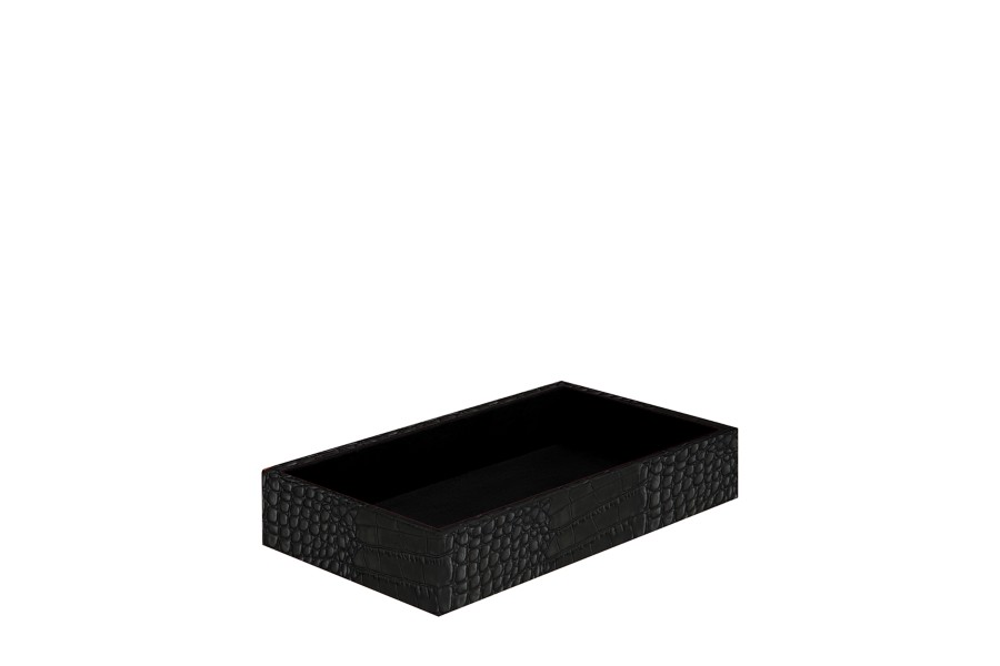 Boîte de Rangement (11 x 20 x 3,5 cm) - Noir - Veau Façon Crocodile
