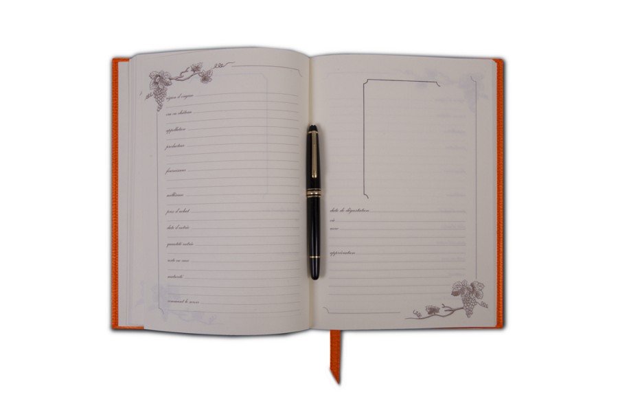 Voici un article indispensable à la bonne tenue d'une cave à vin. Ce livre de cave en cuir qui dispose d'une lanière marque-page permet de répertorier 77 millésimes. La page de gauche comporte divers paragraphes pour reporter toutes les informations importantes : région d'origine, cru ou château, appellation, producteur, fournisseur, millésime, prix d'achat, date d'entrée, quantité entrée, reste en cave, maturité et comment le servir. La page de droite est prévue pour coller l'étiquette de la bouteille, renseigner la date de dégustation et les appréciations.