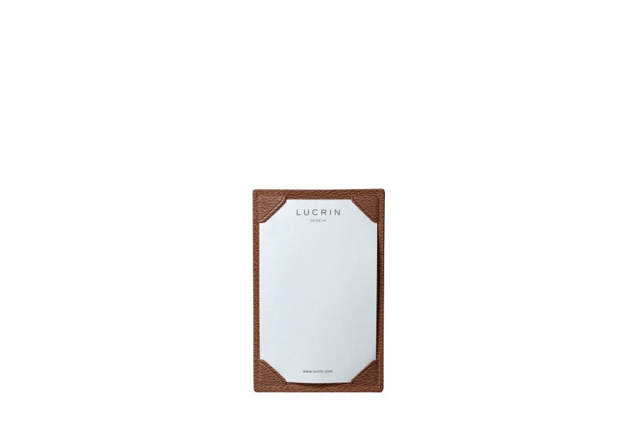 Cet écritoire de poche vraiment peu encombrant est idéal pour griffonner quelques notes, réflexions ou numéros de téléphone. D'un côté, c'est l’écritoire proprement dit, où les feuilles sont tenues par 4 encoches. De l'autre face, vous avez une fente pour glisser des recharges de papier ou ranger une carte format carte de crédit. Bien entendu, tous nos écritoires sont livrés avec des feuillets blancs LUCRIN liés à quelques blocs de recharges.