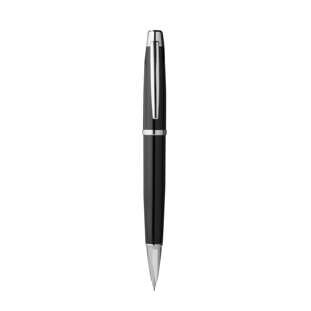 Après le succès de son stylo à bille, LUCRIN Geneva propose son porte mine tout aussi élégant et pratique. De couleur noir brillant, ce porte crayon mine graphite HB 0.5 est livré dans un étui en cuir avec doublure intérieure en microfibre pour une protection optimale. Cette création très aboutie est un cadeau original pour les amoureux de l'écriture. Pensez à personnaliser l'étui en cuir avec par exemple des initiales .