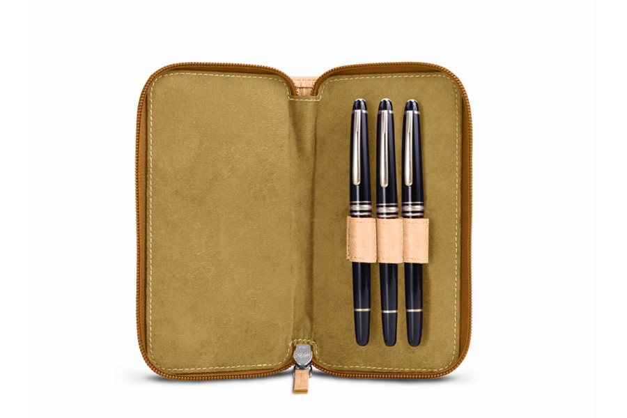 Étui 3 stylos zippé - Naturel - Cuir végétal