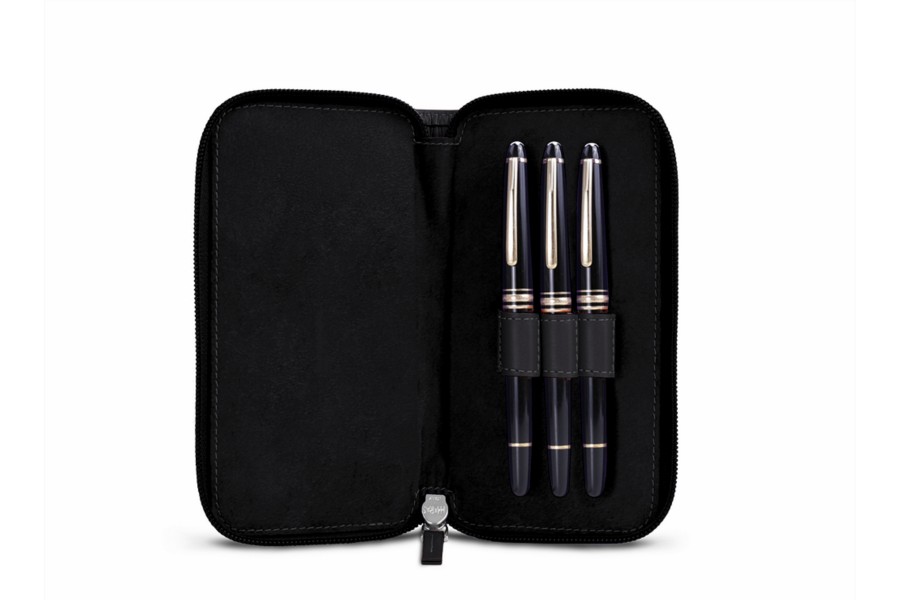 Étui 3 stylos zippé en cuir véritable. Ce luxueux porte 3 stylos zippé contient 3 passants intérieurs extensibles pour tenir vos plumes et stylos. Cette trousse en cuir convient donc parfaitement pour stylo fin, moyen et gros. Cette housse pour plumes est idéale pour ranger ou transporter vos instruments d'écriture. Il se glisse facilement dans un sac ou dans une poche.