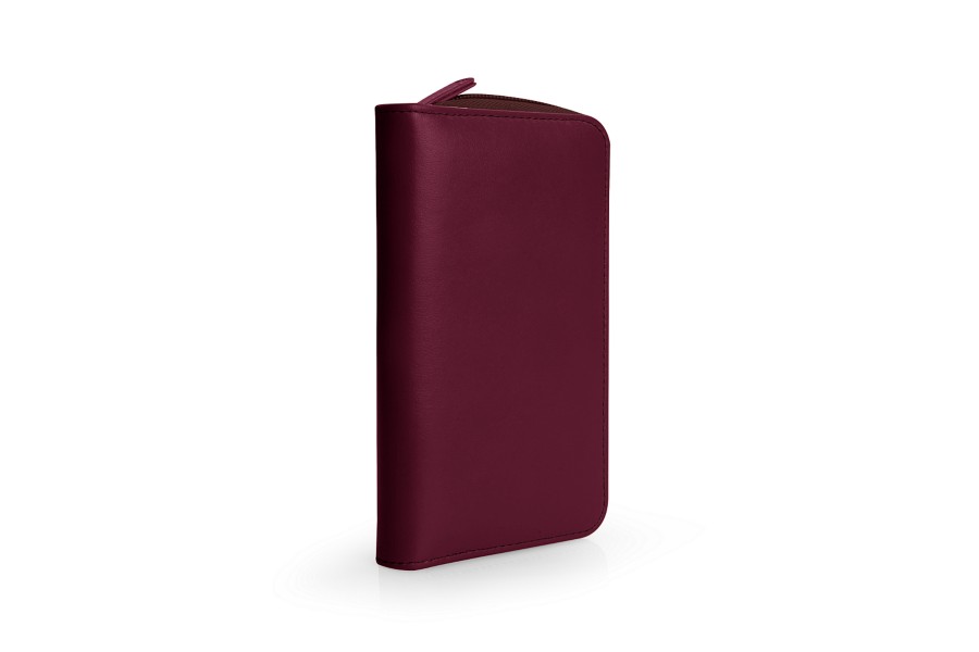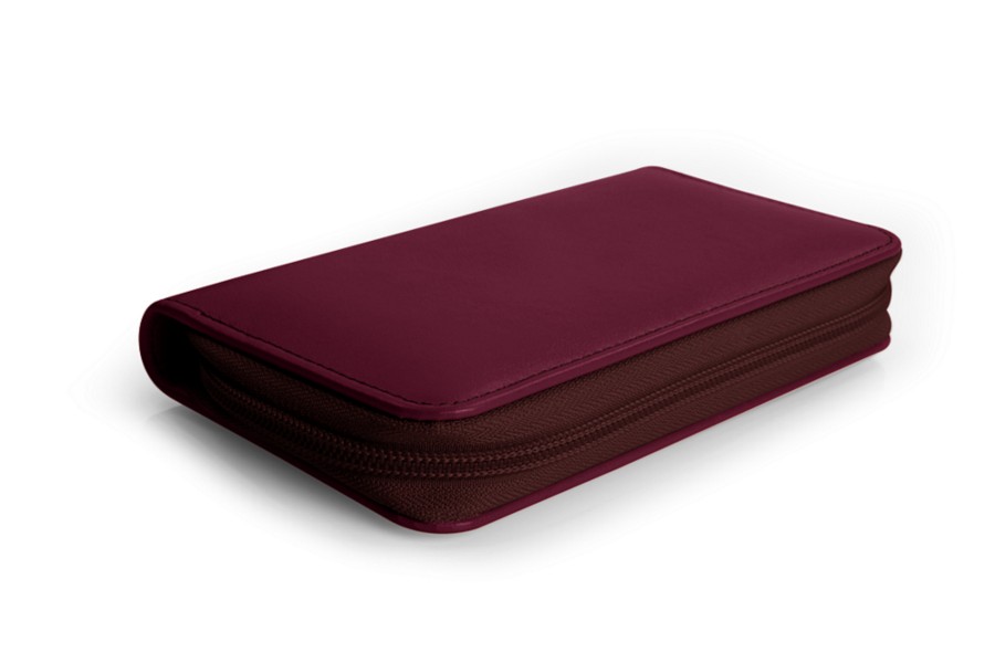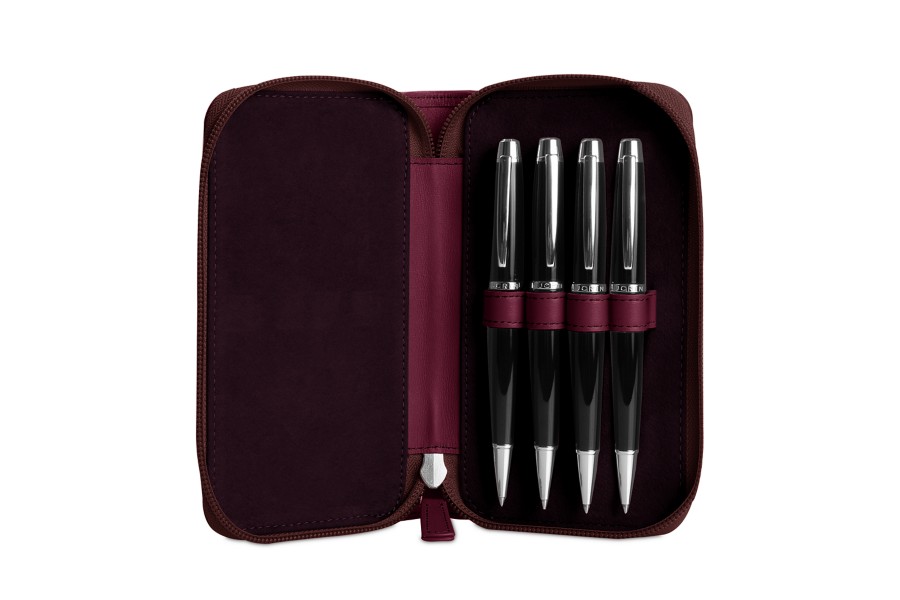 Étui 4 stylos zippé - Bordeaux - Cuir Lisse