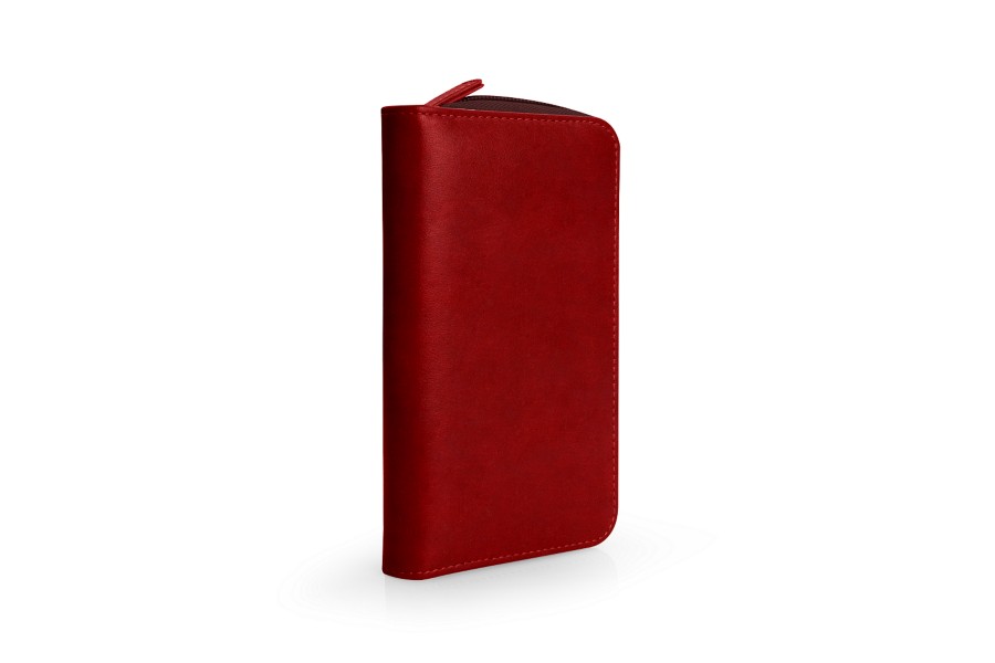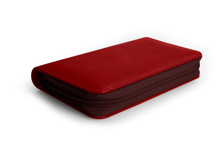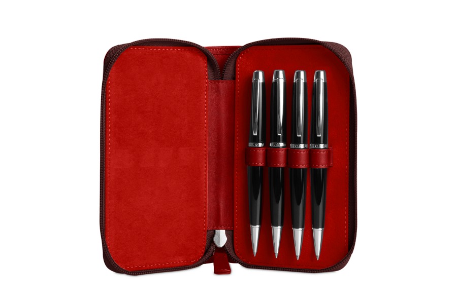 Étui 4 stylos zippé - Carmin - Cuir végétal