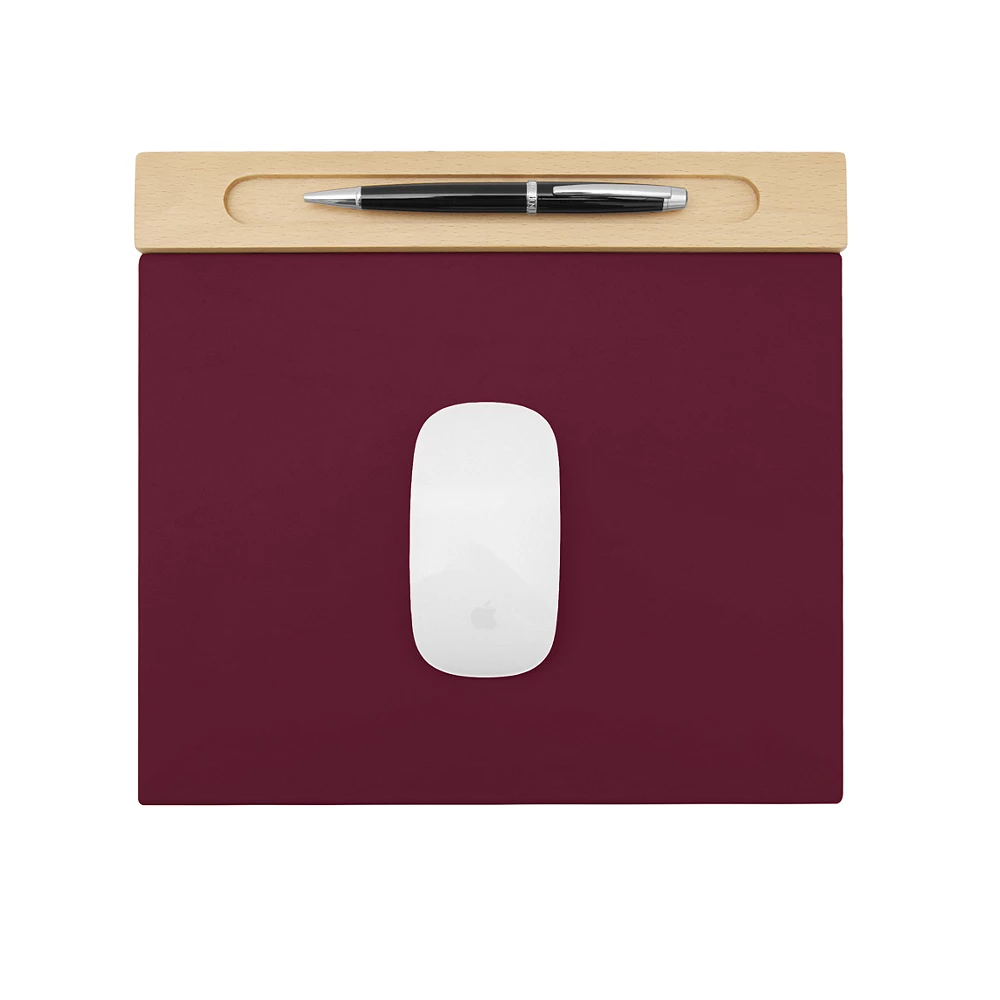Tapis de souris - Bois Chêne et Cuir Bordeaux  - Cuir Lisse